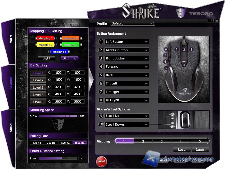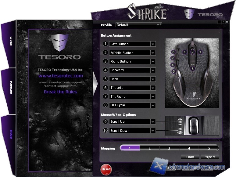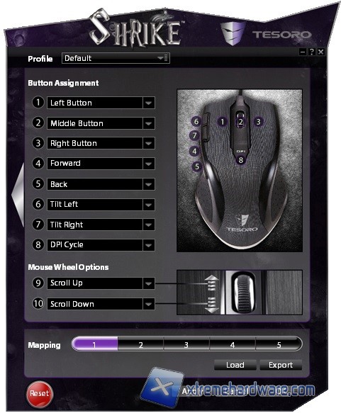 Avviato il software, ci troviamo di fronte l’interfaccia classica dei prodotti Tesoro. Questa volta in versione ridotta. La grafica risulta dunque molto spartana e troviamo una colorazione nero e grigio. Come vediamo l’immagine campione per assegnare i tasti risulta essere quella dello Shrike Black.