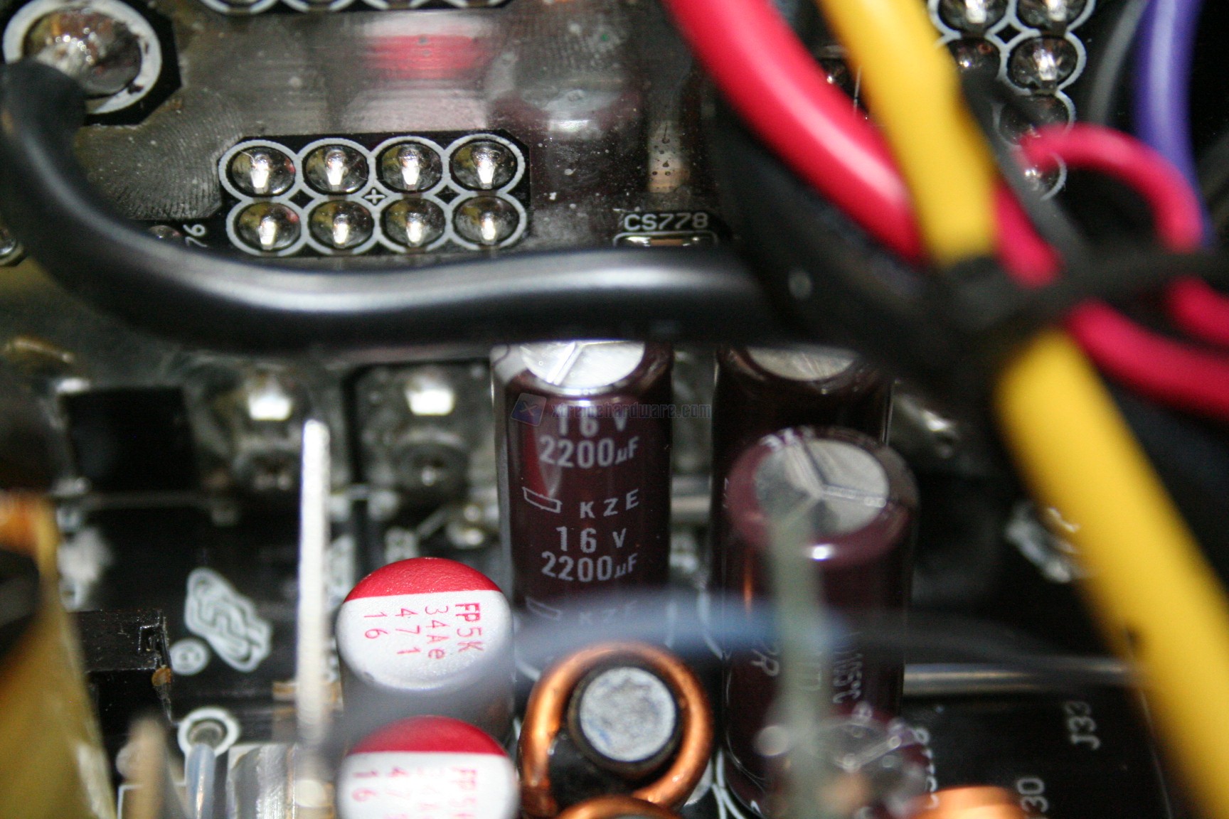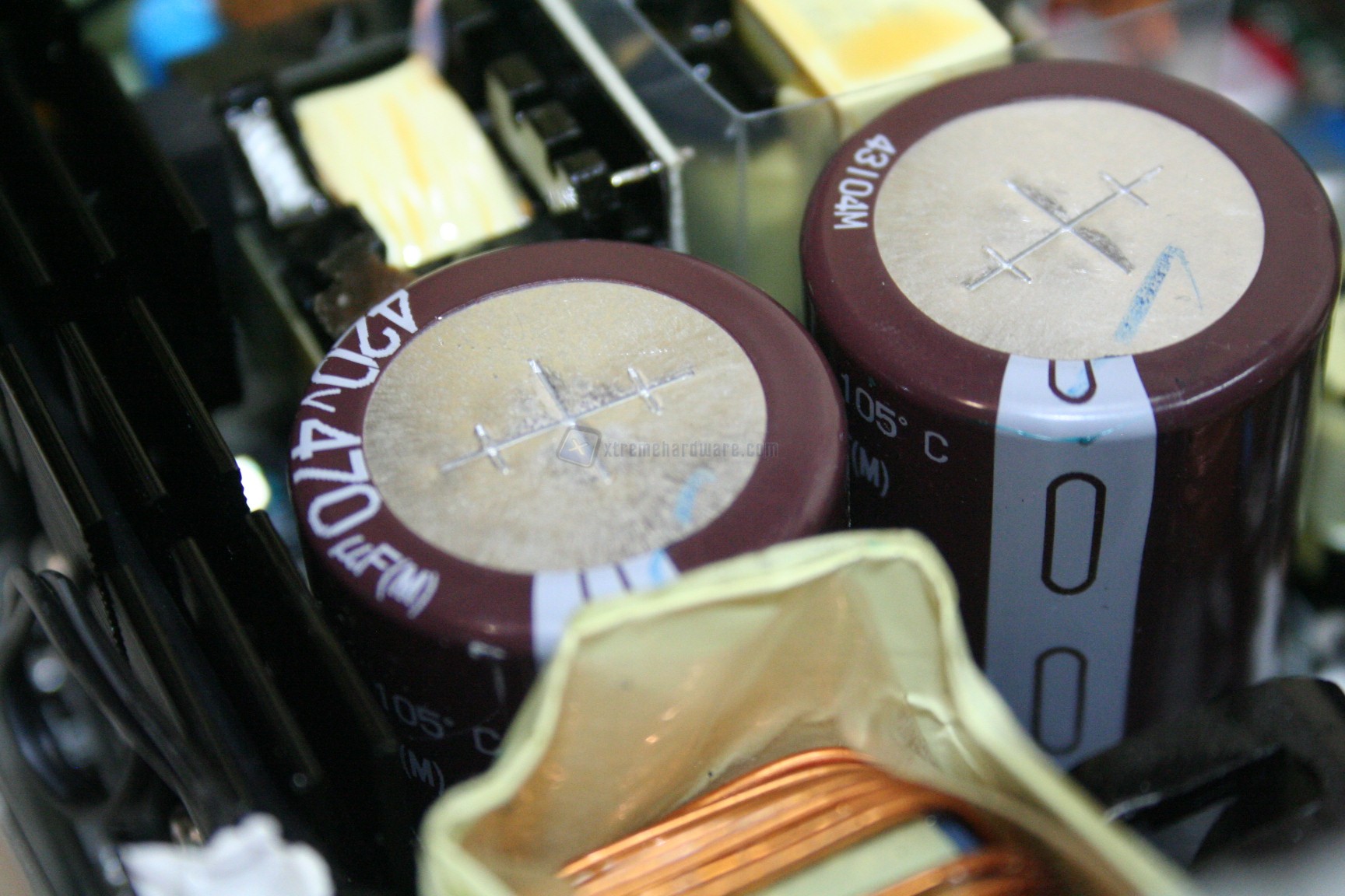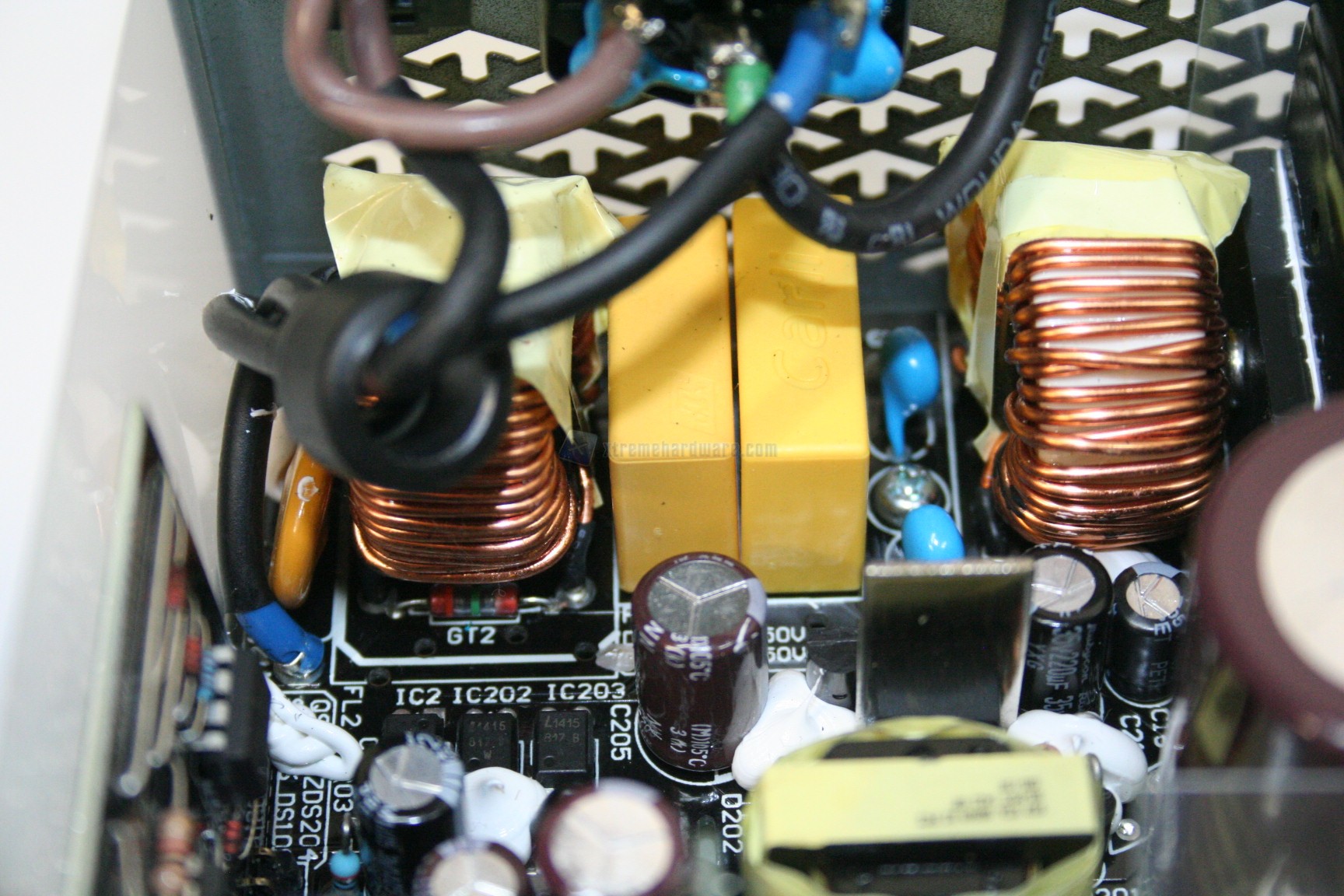 NOTA GENERICA: quelli del circuito primario agiscono come buffer e sono molto importanti perché la loro presenza aiuta a proteggere il nostro alimentatore ed il computer stesso da pericolosi sbalzi di tensione e generalmente vengono collegati in parallelo al fine di sommare le singole capacità o, alternativamente, per modelli meno potenti. La tipologia dei condensatori utilizzata è quindi molto importante perché la vita di queste componenti si dimezza in base all’aumento della temperatura di ogni 10 gradi Celsius, sotto un normale carico di lavoro; questo significa che utilizzando modelli di condensatori capaci di gestire, senza il minimo problema anche 105 gradi Celsius, la durata della loro vita potrebbe essere addirittura pari al doppio rispetto a modelli standard da 85 gradi Celsius! Questo fattore è uno dei più sponsorizzati nel campo degli SMPS, non a caso ci si vanta della presenza di condensatori giapponesi nella propria unità, capaci appunto di sopportare temperature maggiori e quindi prolungare la vita stessa dell’unità.