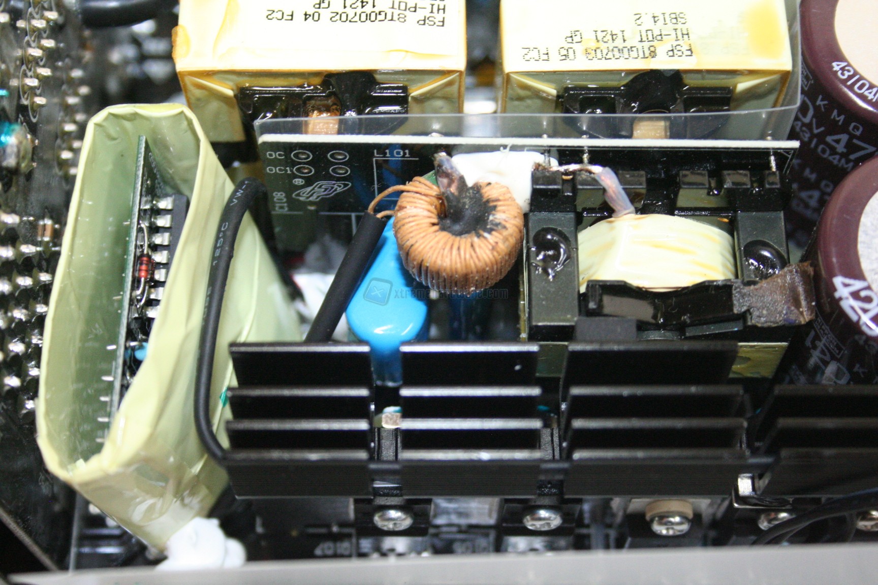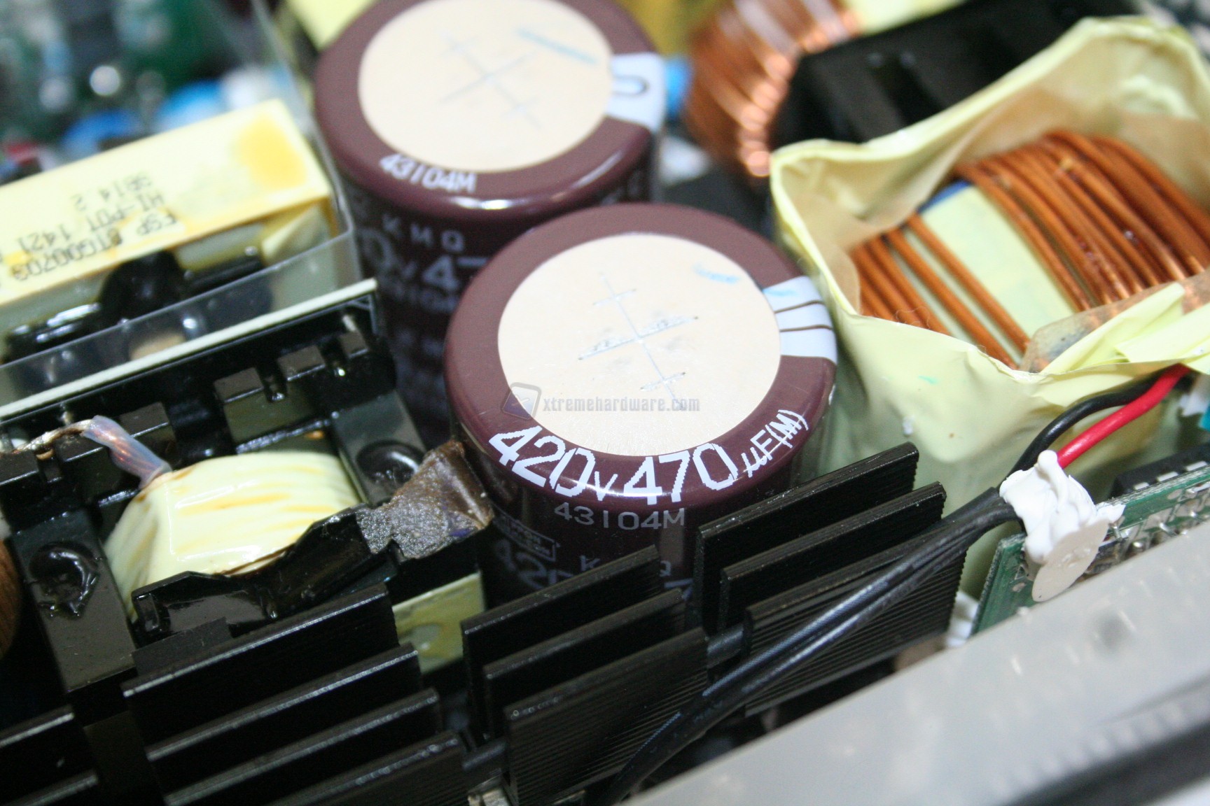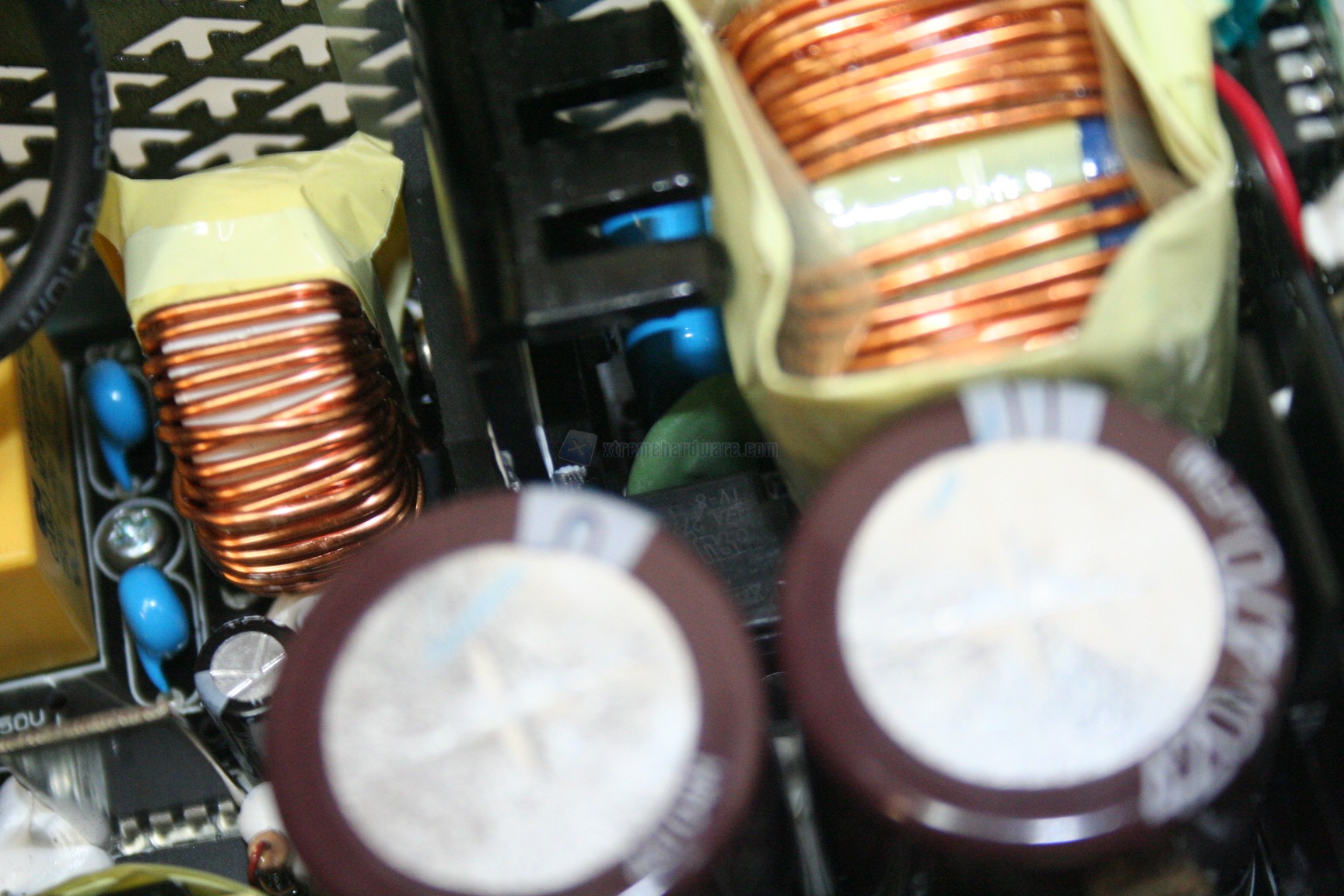 NOTA GENERICA: quelli del circuito primario agiscono come buffer e sono molto importanti perché la loro presenza aiuta a proteggere il nostro alimentatore ed il computer stesso da pericolosi sbalzi di tensione e generalmente vengono collegati in parallelo al fine di sommare le singole capacità o, alternativamente, per modelli meno potenti. La tipologia dei condensatori utilizzata è quindi molto importante perché la vita di queste componenti si dimezza in base all’aumento della temperatura di ogni 10 gradi Celsius, sotto un normale carico di lavoro; questo significa che utilizzando modelli di condensatori capaci di gestire, senza il minimo problema anche 105 gradi Celsius, la durata della loro vita potrebbe essere addirittura pari al doppio rispetto a modelli standard da 85 gradi Celsius! Questo fattore è uno dei più sponsorizzati nel campo degli SMPS, non a caso ci si vanta della presenza di condensatori giapponesi nella propria unità, capaci appunto di sopportare temperature maggiori e quindi prolungare la vita stessa dell’unità.