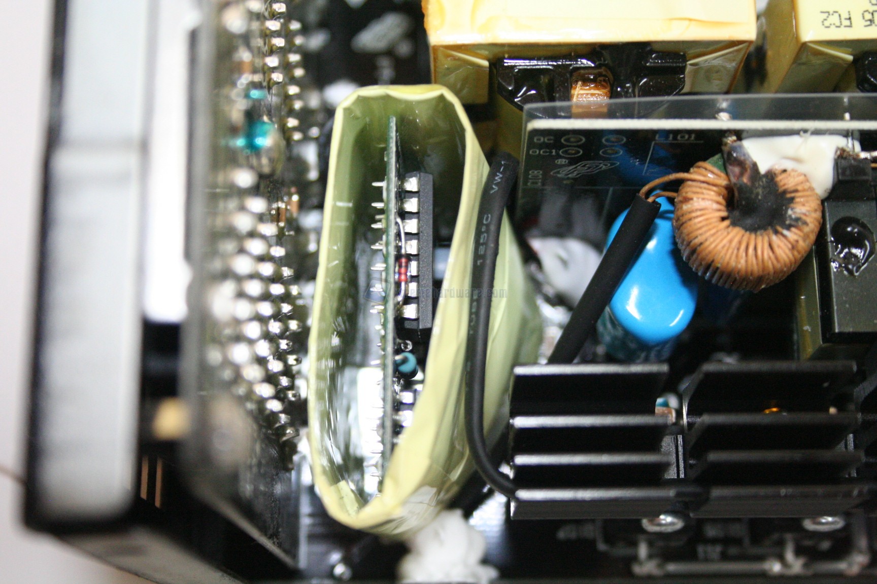 La topologia è full-bridge LLC (LLC resonant converter, in gergo), ragione per cui troviamo la certificazione 80 Plus Platinum, il top per categoria. Nel secondario invece troviamo dei convertitori DC-DC, necessari per la conversione delle rail minori partendo dalla +12V.
